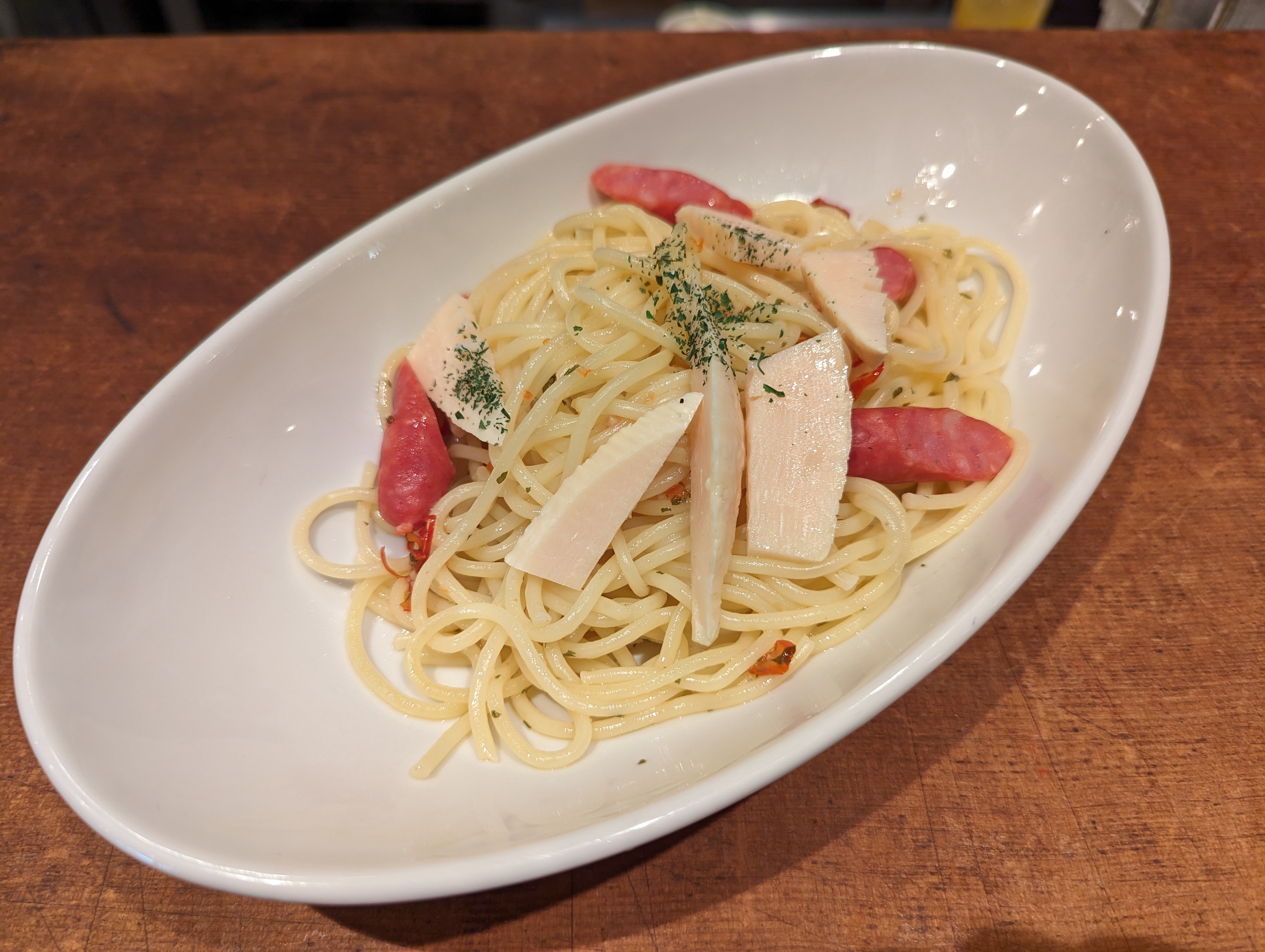 新宿カフェ ラ ヴォワのパスタは生パスタを使用しており、乾麺にはないモチモチとした食感がくせになります。 来週3/30からの週替りパスタメニューは「たけのことソーセージのペペロンチーノ」 旬の味ともちもち生パスタ。是非ご賞味ください!